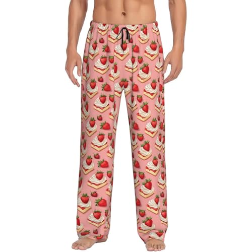 HOT ! Mens Pajama Pants - Strawberry Cake Print Soft Sleep Lounge Pants For Men, Casual Pj Bottoms With Pockets