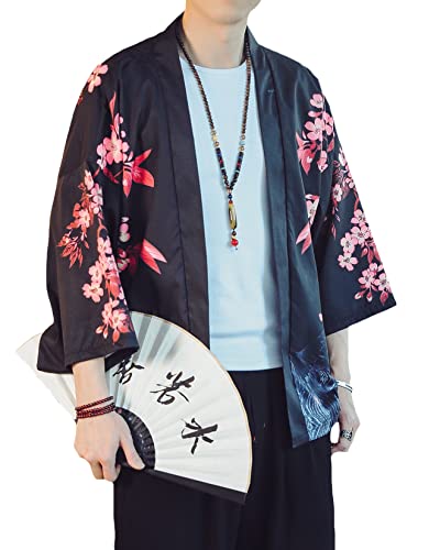 PRIJOUHE Men's Lightweight Kimono Jacket Seven Sleeve Open Front Cardigan Coat Japanese Style Bathrobe 7