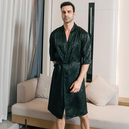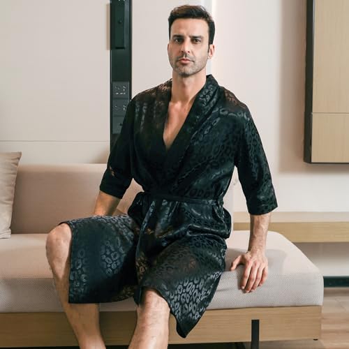 More information about Men's Satin Robe Lightweight Half sleeves Silk Kimono Bathrobe with Shorts Set Sleepwear