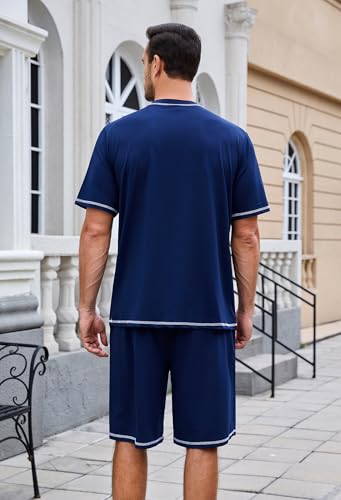 Mens Pajama Set, Soft Short Sleeve Lounge Set Pullover Pjs 2 Piece Outfits with Pocket 5
