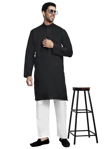 HOT ! Men's Cotton Blend Casual Kurta Pajama Set (Black, X-Large)
