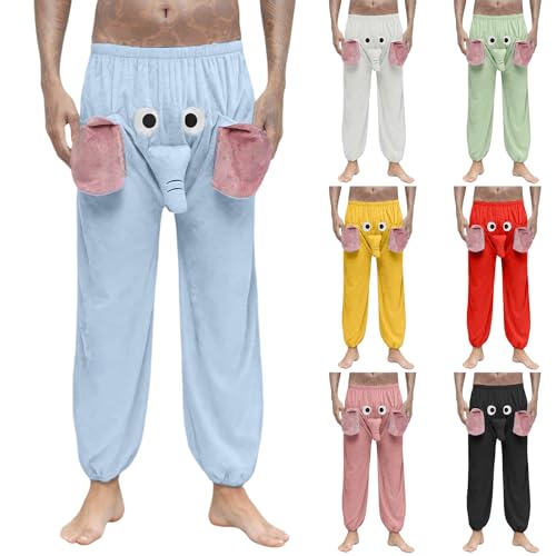 HOT ! Elephant Pajama Pants, Cute Animal Pants Funny Cartoon Elephant Trunk Pajama Bottoms Fleece Sleepwear for Men, Couple