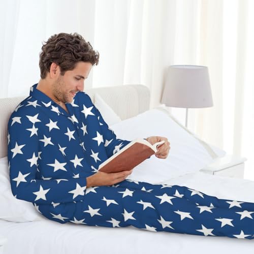 Stars On The America Flag Mens Pajamas Set Button Down Sleepwear Set Long Sleeve Loungewear With Pockets 7