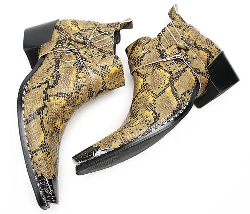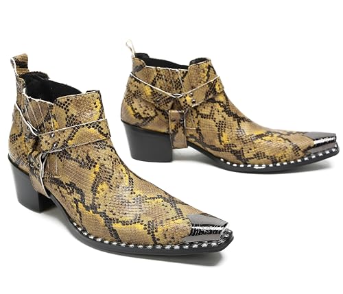 More information about Santimon Chelsea Boots Men Casual Party Dress Genuine Leather Metal Pointed Toe Silp On Snake Print Cowboy Boots Fashion Buckle Ankle Western Boots for Men