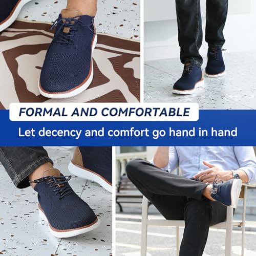 • [Breathable Knit Upper for All-Day Freshness] Crafted with lightweight knitted fabric, these mens casual shoes ensure non-stop air circulation. Whether in a meeting or strolling outdoors, the airy construction of these casual dress shoes for men keeps feet fresh and dry, even in warm weather