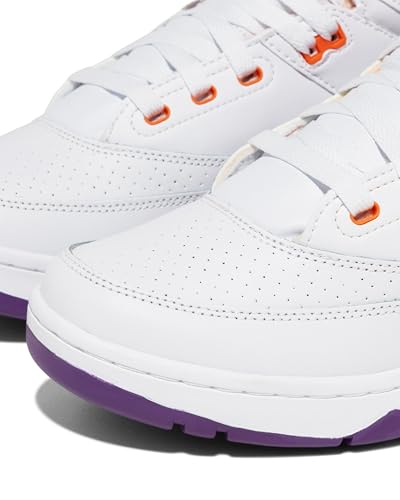 • This 33 HI is a fresh new take on our classic silhouette. Drawing color inspiration from the City of Phoenix this model features a traditional colorblocking pattern with a White Leather upper along with Purple and Orange accents.The flagship Ewing Athletics shoe, the 33 HI is an exact retro of the 1990 original, and features a classic reversible ankle strap that can be worn on the front or back of the shoe, full leather upper and a full length PU midsole for cushioning and a rubber outsole.Produ