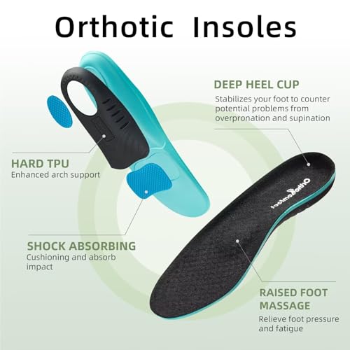 • WHAT YOU GET? Planters fasciitis support | Corrected posture | Longer walks, workouts | Muscle fatigue relief | Joints relaxation | Spinal stress relief | Extra cushioning in forefoot, metatarsal and heel region. OrthoComfoot shoe insoles provide plantar fasciitis - high arch - flat feet - heel spurs - metatarsalgia - shin splints - bunions - achilles tendonitis - diabetic - overpronation - ball of foot pain - hip pain support and pain relief