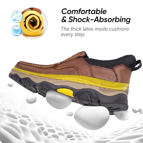 UPIShi Men's Hands Free Slip On Walking Leather Loafers Slip-ins Work Office Dress Casual Outdoor Lightweight Cushioning Shoes 4