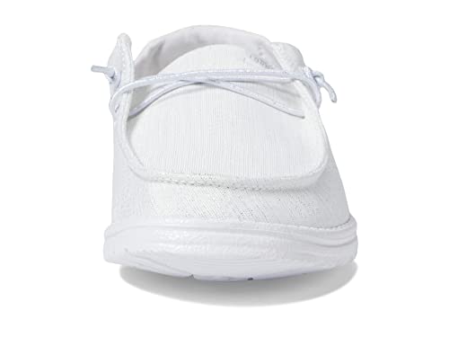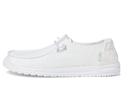• IDEAL FOR EVERY OUTFIT: The Hey Dude casual sneakers feature a textured metallic textile upper that adds an instant dose of sparkle to your style. The eye-catching glittery finish makes these loafers a standout piece, perfect for elevating your casual outfits. Pair them with jeans, shorts, or casual dresses for a chic, laid-back look.