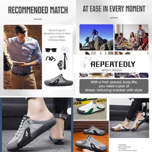 • Breathable & LightweightThese mens backless sneakers offer superior breathability, The lightweight construction ensures all-day comfort, making them ideal mens casual slip-on shoes for daily wear, walking, or outdoor activities Easy Slip-On DesignNo more hassle with laces—these men’s slip-on sneakers feature a convenient backless mule design for effortless on-and-off wear. A perfect combination of mens mule slippers and sporty sneakers Shock-Absorbing & Cushioned ComfortThe soft