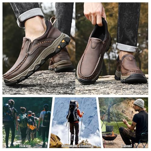 Men's Loafers Casual Slip On Water-Resistant Leather Lightweight Breathable Non Slip Dress Shoes Comfortable for Driving Walking Hiking 5