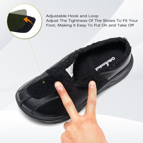 OrthoComfoot Men's Orthopedic Wide Winter Slippers for Diabetic: Comfortable Arch Support Leather Dress Shoes for Plantar Fasciitis, Casual Orthotic Hammer Toes Walking Shoes for Foot and Heel Pain 5