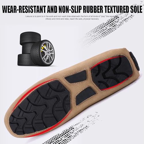 Men's Handmade Suede Dress Penny Loafers Fashion Square Toe Moccasin Slip On Driving Boat Shoes Daily Lightweight Non-Slip Flat Casual Shoes Large Size 6-15 5