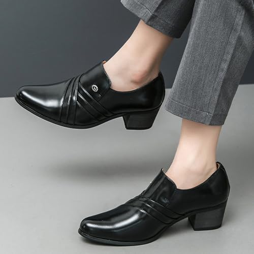 Men's Leather Pointed Toe Block Heels Slip-on Oxford Shoes Comfort Medium Chunky Heels Retro Low Top Dress Prom Shoes for Wedding Business Work Dating 6