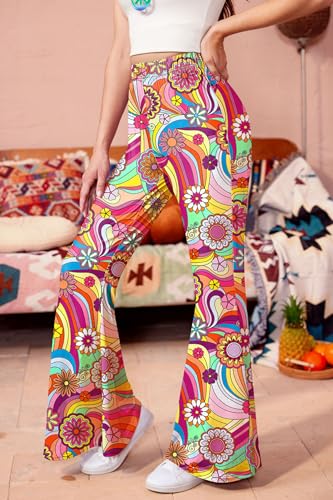 For G and PL Women's Halloween 5 Pcs Hippie Costume Pants Floral Bell Bottom Outfits 5