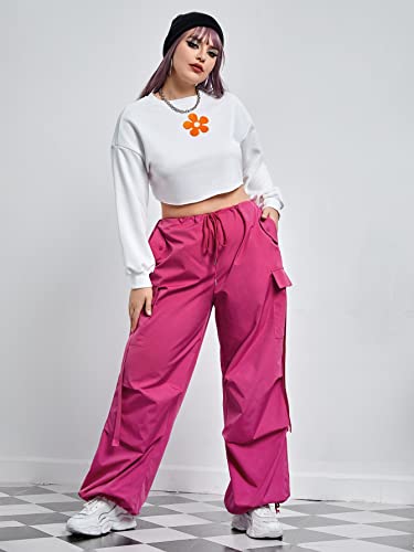 Floerns Women's Plus Size Flap Pocket Drawstring High Rise Parachute Baggy Cargo Pants 4