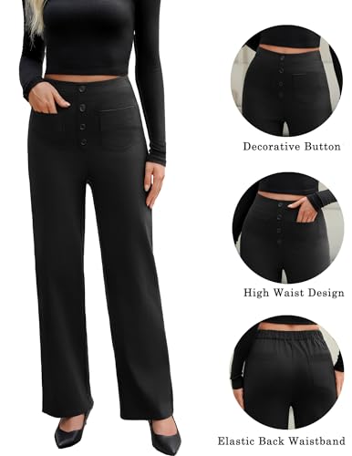 HOT ! Women's High Waisted Straight Leg Pants Stretchy Business Casual Pants Button Down Work Trousers with Pockets