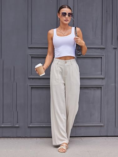 zsangbee Womens Linen Pants Summer Dressy Beach Wide Leg Linen Trouser Work Business Casual Slacks 6