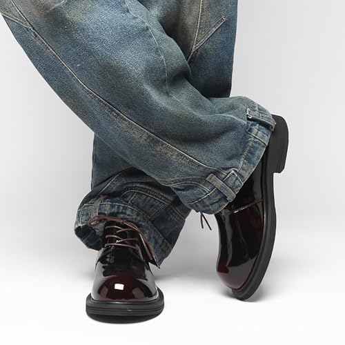 Men's Patent Leather Lace Up Platform Oxfords Classic Round Toe Derby Dress Shoes for Business Wedding Tuxedo Formal 6