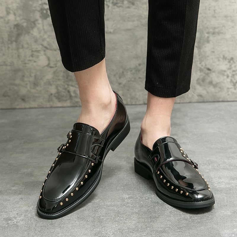 HOOENG Dress Oxford Shoes for Men Slip On Round Toe Solid Color Vegan Leather Double Monk Strap Block Heel Anti-Slip Rubber Sole Casual 6