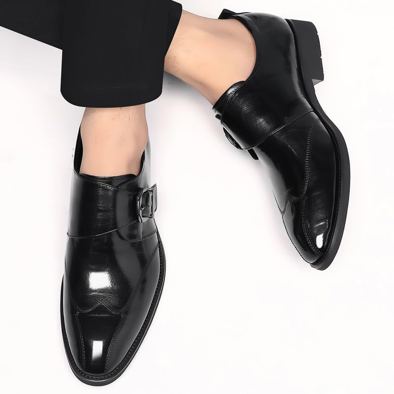 More information about HOOENG Oxford Shoes for Men Slip On Pointed Burnished Toe Wing tip Monk Strap PU Leather Anti-Slip Low Top Block Heel Walking