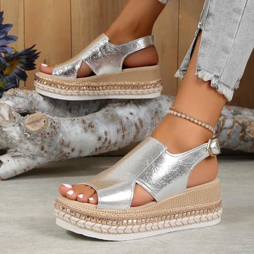 Orthopedic Sandals for Women,Summer Sandals for Women 2025,Casual Comfortable Mid Heels Open Toe Espadrilles Slip On Shoes Dressy Summer Flat Casual Strappy Slip On Wedges Shoes 2