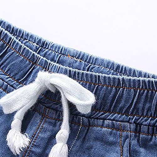 Girls Boys Jeans Pants Kids Cotton Soft Denim Pants Casual Elastic Waisted Toddler Kids Cute Embroidery Print Jeans 7