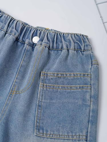 Kids Girls Capri Denim Pants High Waist Wide Leg Cropped Jeans Midi Trousers with Patch Pockets 6