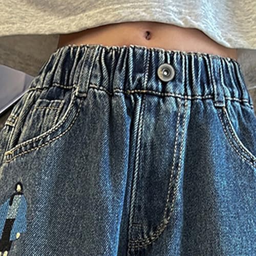 Girls Plus Size Jeans Cute Back to School Clothes Teen Girls Baggy Embroidery Graphic Trousers High Waist Denim Pants 6