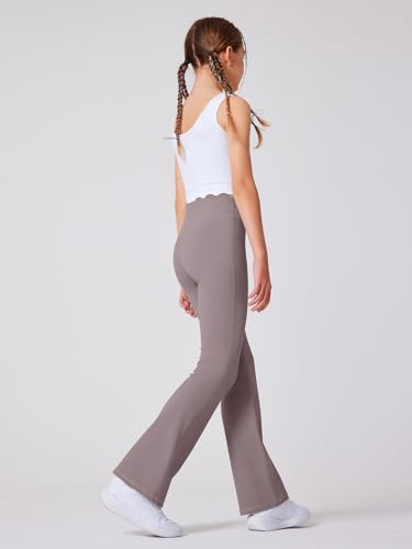 Girls Flared Pants Scallop Waist Yoga Pants Workout Running Leggings 6