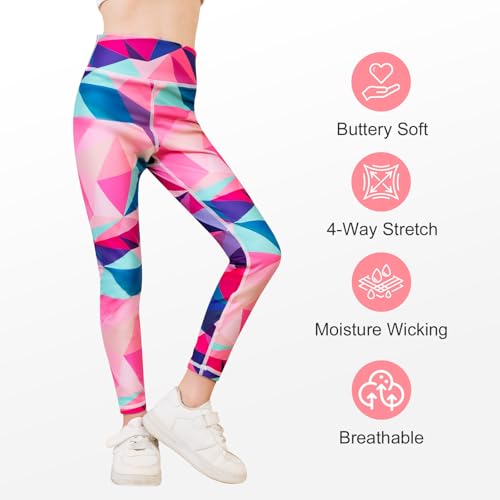 Girls Full Length Athletic Leggings Kids High Waist Lounge Pants Girls Active Dance Running Workout Yoga Pants 3