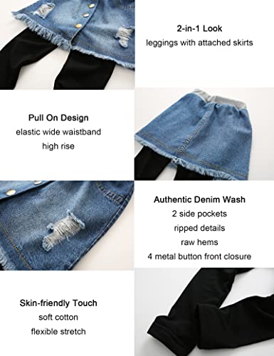Kiench Girls' Leggings with Denim Skirts Attached Pants Footless Tights 3