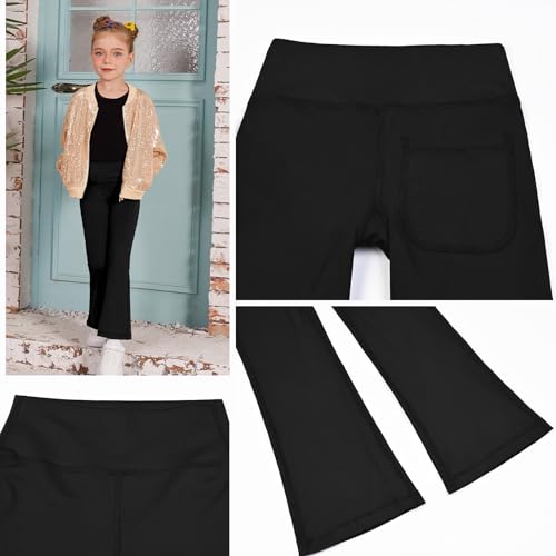 Mirawise Girls Leggings Flare Yoga Pants with Pocket Running Athletic Sports High Waist Active Skinny Tights for 6-13Y 3