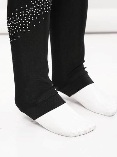 Kids Boys Girls Elastic Waistband Rhinestones Decor Pants Ice Skating Workout Sports Practice Leggings 6