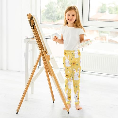 Cute White Bunny Girls Leggings,Workout Leggings for Girls Toddler Athletic Legging Size for 3-10T 7