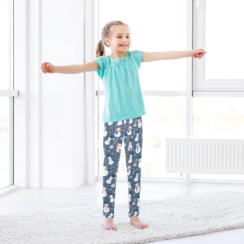 Girls Printed Leggings Yoga Pants Christmas Snowman for Kids in 4t to 10 Years, 4T 7