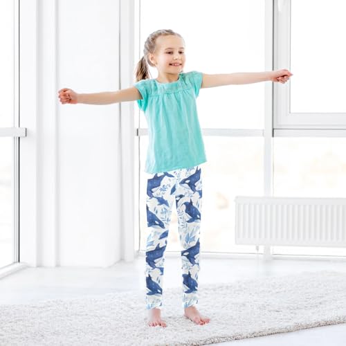 Killer Whale on Blue Girls Leggings Stretchy High Waisted Pants Running 6