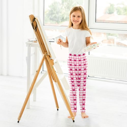 Love Heart Pink Checked Girls Leggings Ultra Soft Compression Yoga Gym Pants for Kids 4-10T 7