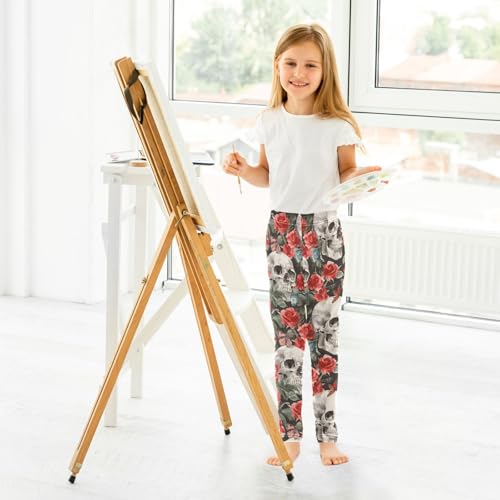 Vintage Skull Rose Girls Leggings Ultra Soft Compression Yoga Gym Pants for Kids 4-10T 4