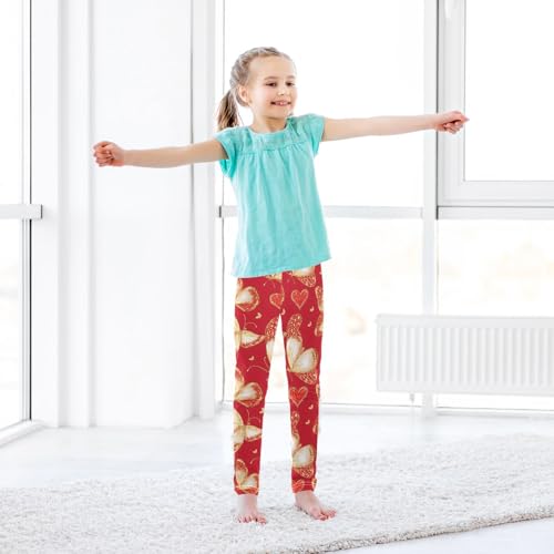 Sparkling Butterfly Heart Girls Leggings Ultra Soft Compression Yoga Gym Pants for Kids 4-10T 4