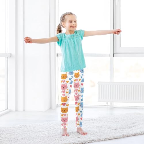 Colorful Cat Love Heart Girls Leggings Ultra Soft Compression Yoga Gym Pants for Kids 4-10T 5
