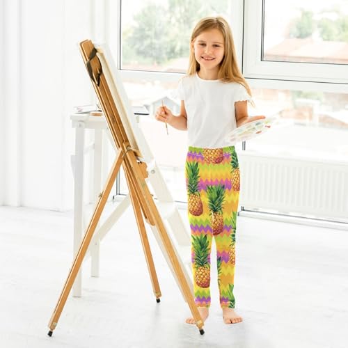 Yellow Pineapple Chevron Stripe Girls Leggings Soft Stretch Workout Yoga Dance Pants for Kids Casual Tights 6
