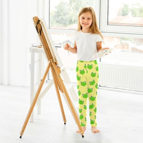 Girls Leggings Size 4T Cartoon Frog Yellow Soft Stretchy Pants Breathable Girl Clothes for Workout Dance 4
