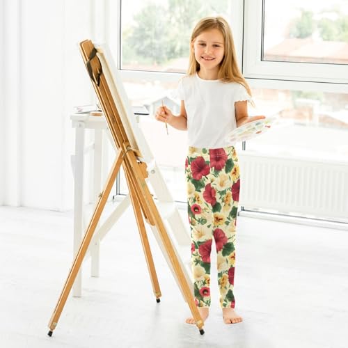 Morning Glory Hibiscus Flower Girls Leggings Soft Stretch Workout Yoga Dance Pants for Kids Casual Tights 4