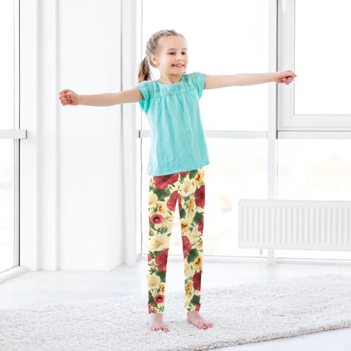 Morning Glory Hibiscus Flower Girls Leggings Soft Stretch Workout Yoga Dance Pants for Kids Casual Tights 7