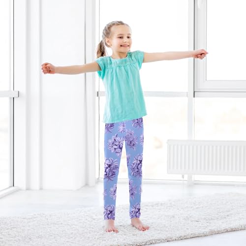 ALAZA Girls' Leggings Children's Yoga Pants Skinny Printed Dance Hyacinth Flowers Purple Comfortable 4T 6