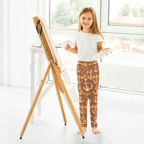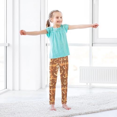 KLL Anchors and Ropes Brown Little Girls Active Leggings Stretch Full Length Sweatpants Gym 7