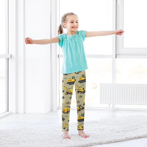 ALAZA Girls' Leggings Children's Yoga Pants Skinny Printed Dance Engineering Vehicle Excavator Comfortable 4T 4
