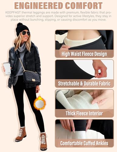 • 【Upgraded Premium Fleece Fabric】KEEPFAST Women's Fleece Leggings are made of high quality 92% polyester + 8% spandex made of shu, not easy to pilling and deformation, no abrasion of the legs, super strong 4-way stretch fabric design. Whether you're bending, stretching or squatting, our thermal yoga leggings stay in place and provide you with all the support you need. Ideal for cold weather up to 40 degrees Fahrenheit.