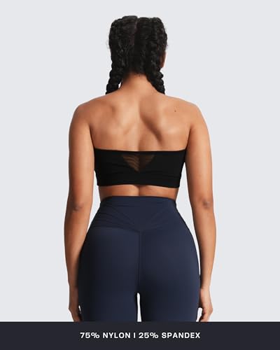 Aoxjox Women's Workout Strapless Bandeau Mesh Bras Training Fitness Running Yoga Crop Tank 4